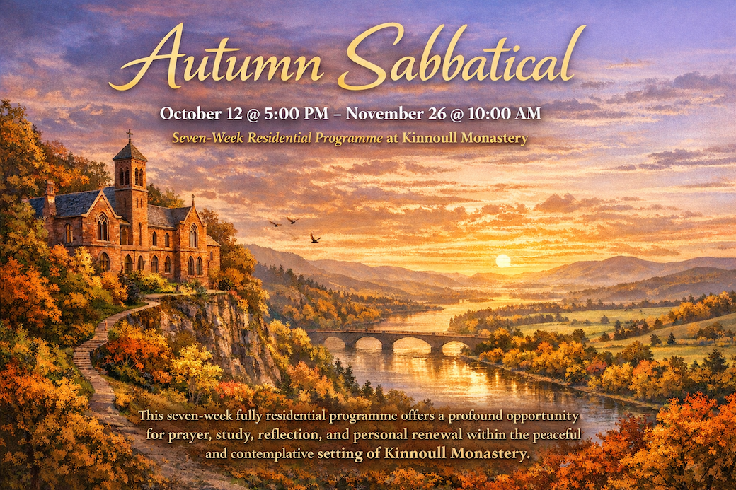 St Mary's Monastery, Hatton Road, Kinnoull, PH2 7BPJoin us for a deeply prayerful and reflective Holy Week Retreat at Kinnoull Monastery, beginning at 5pm on Monday, 30th March 2026 and concluding after lunch on Good Friday, 3rd April 2026. Set in the peaceful, contemplative environment of the monastery overlooking Perth, this retreat offers a sacred space to slow down, pray, and journey through the heart of the Christian year. Throughout the week, participants ...